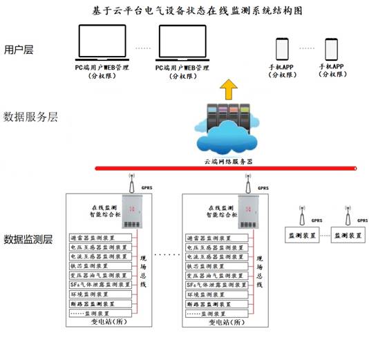 現地數據采集監測層由三部分組成,即監測裝置、在線監測智能綜合柜及在線監測管理平臺。